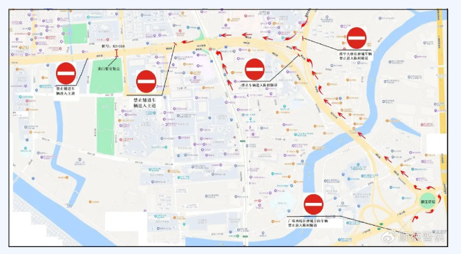 (三)105国道往禅城方向的车辆,禁止进入陈村隧道,须绕道佛陈路辅道 → 佛陈路顺联广场路口 → 禅城方向行驶;