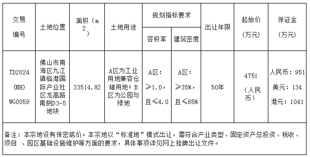 南海区九江镇临港国际产业社区南鲲大道北侧D3-1地块网上挂牌出让