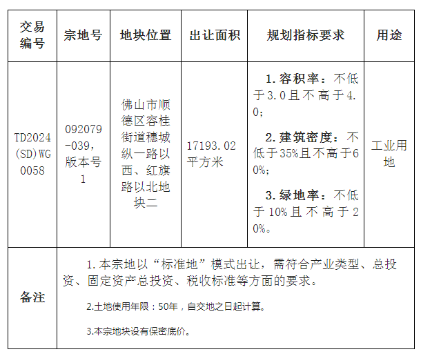 五、有意参与竞买者可于2024年9月20日后登录网上交易系统下载TD2024(SD)WG0058地块的《佛山市顺德区国有建设用地使用权网上挂牌出让文件》。