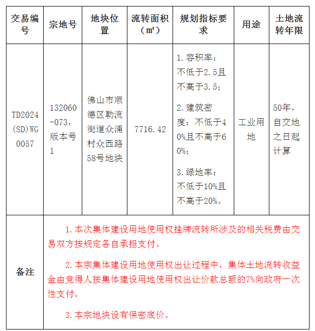 经佛山市顺德区人民政府批准,受佛山市顺德区勒流街众涌股份合作经济社委托,本中心现采用网上挂牌方式流转以下地块的集体建设用地使用权,现将有关网上挂牌事项公告如下: