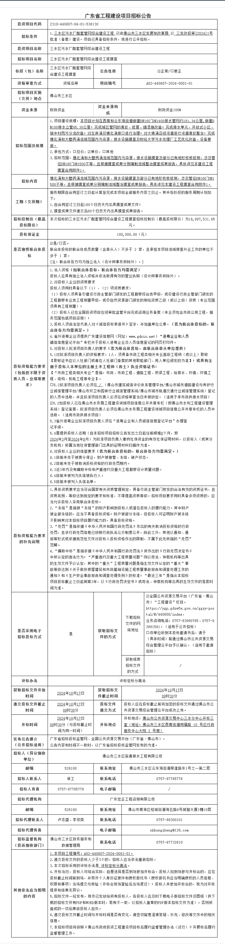 三水区污水厂配套管网综合建设工程摸查招标公告