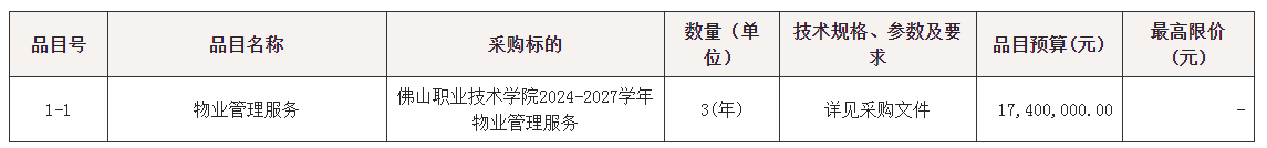 项目名称:佛山职业技术学院采购2024-2027学年物业管理服务