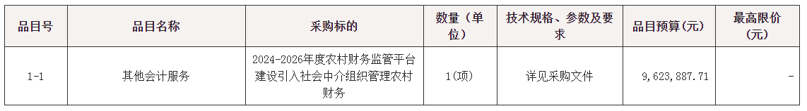 2024-2026年度农村财务监管平台建设引入社会中介组织管理农村财务招标公告