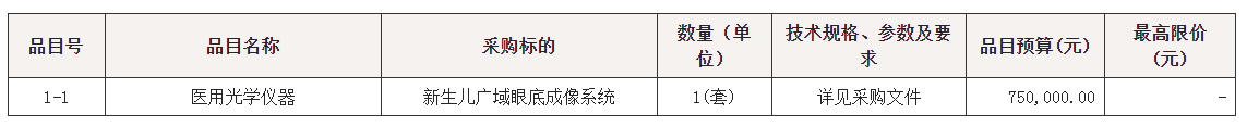 佛山市高明区人民医院新生儿广域眼底成像系统、体外碎石机(含B超探头配套设备)设备采购项目(二次)招标公告