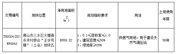 五、有意参与竞买者可于2024年9月27日后登录网上交易系统下载TD2024(SS)WP0043地块的《佛山市三水区国有建设用地使用权网上拍卖出让文件》。