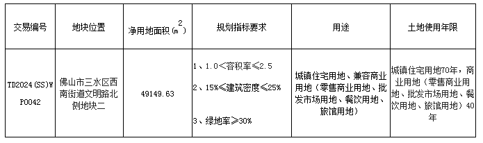 五、有意参与竞买者可于2024年9月27日后登录网上交易系统下载TD2024(SS)WP0042地块的《佛山市三水区国有建设用地使用权网上拍卖出让文件》。
