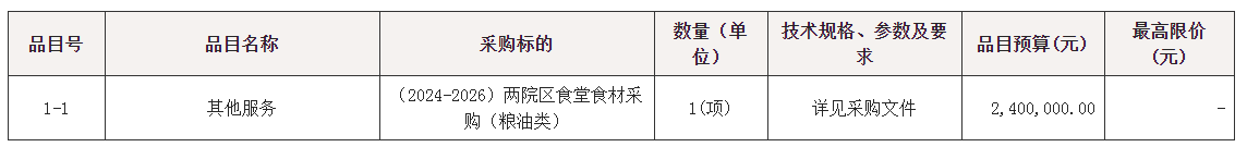 项目名称:(2024-2026)两院区食堂食材采购(粮油类)