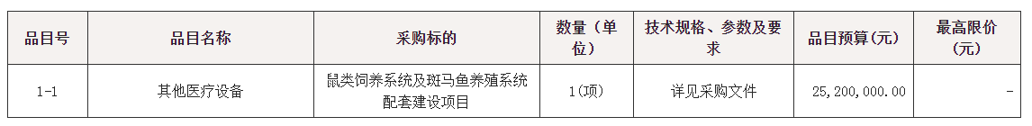项目名称:鼠类饲养系统及斑马鱼养殖系统配套建设项目