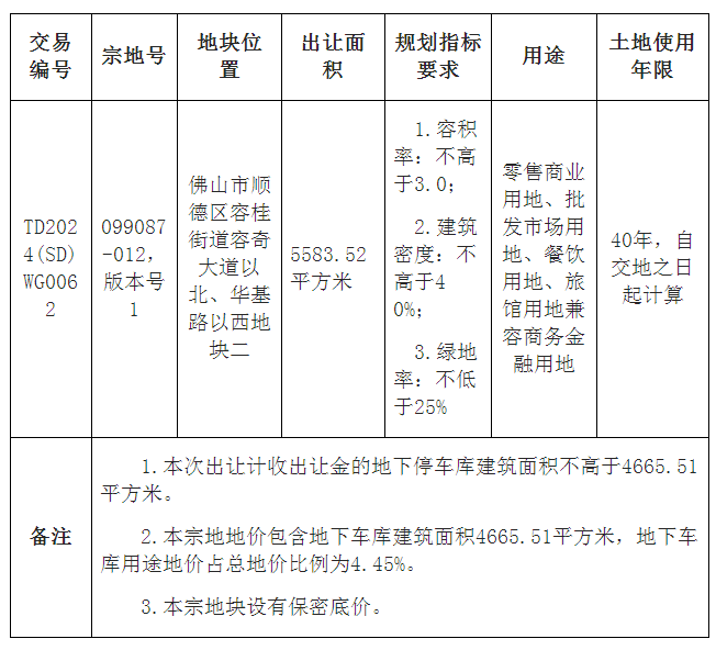 五、有意参与竞买者可于 2024年9月29日后登录网上交易系统下载TD2024(SD)WG0062地块的《佛山市顺德区国有建设用地使用权网上挂牌出让文件》。