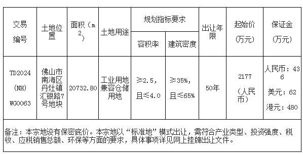 八、自本次公告起至网上挂牌截止期间,如有关于本宗地竞买文件的修改、澄清、说明等将通过网上交易系统以及佛山市南海区人民政府网发布,请有意参与竞买者密切留意。其它未尽事宜,详见本宗地的网上挂牌出让文件。