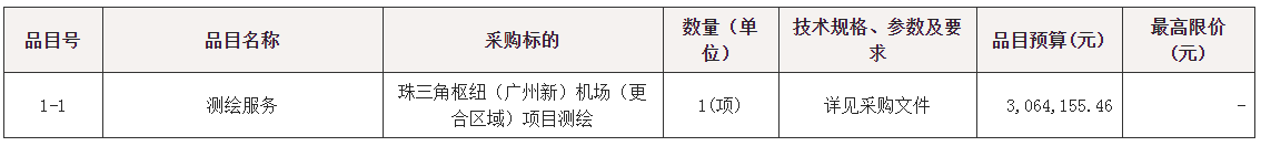 珠三角枢纽(广州新)机场(更合区域)项目测绘采购项目的潜在供应商应在广东省政府采购网https://gdgpo.czt.gd.gov.cn/获取采购文件,并于 2024年10月16日 09时30分 (北京时间)前提交响应文件。