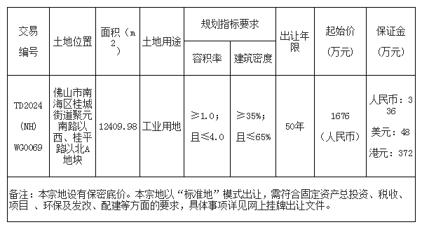佛山市南海区国有建设用地使用权网上挂牌出让公告