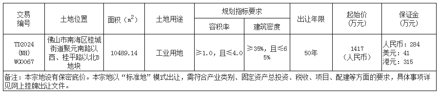 八、自本次公告起至网上挂牌截止期间,如有关于本宗地竞买文件的修改、澄清、说明等将通过网上交易系统以及佛山市南海区人民政府网发布,请有意参与竞买者密切留意。其它未尽事宜,详见本宗地的网上挂牌出让文件。