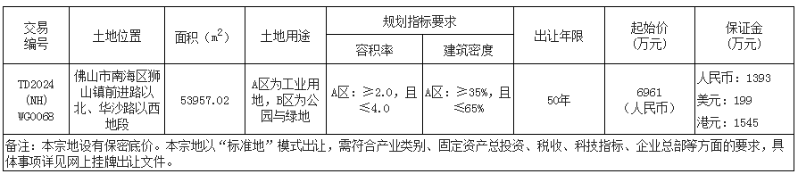 经佛山市人民政府批准,佛山市自然资源局决定委托佛山市公共资源交易中心南海分中心采用网上挂牌方式出让下列地块的国有建设用地使用权。现将有关事项公告如下: