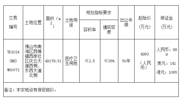 佛山市南海区国有建设用地使用权网上挂牌出让公告