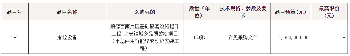 采购包1(顺德西南片区基础配套设施提升工程-均安镇城乡品质整治项目(平急两用智能配套设施安装工程)):