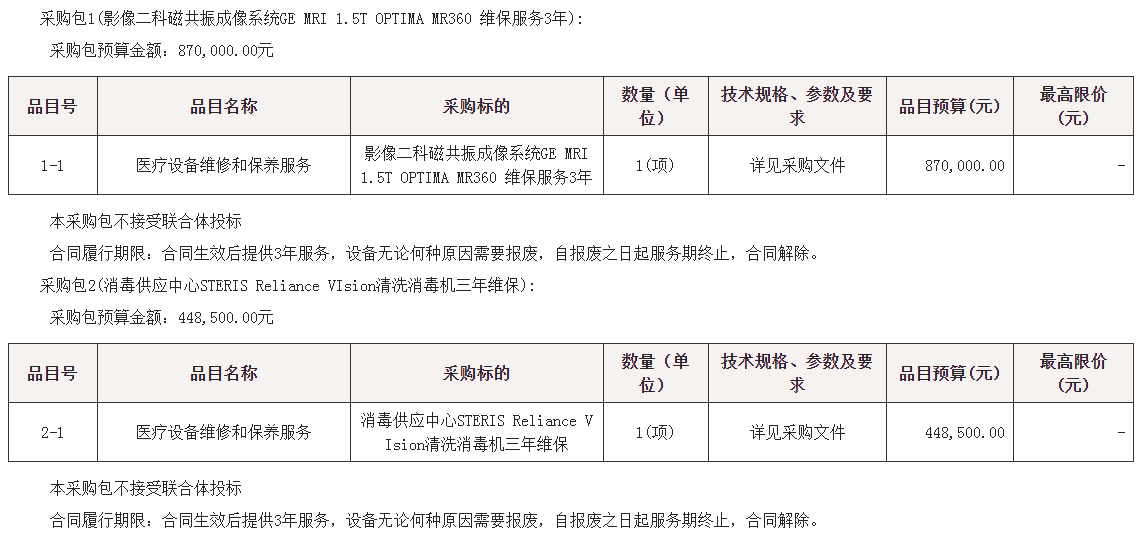 采购包1(影像二科磁共振成像系统GE MRI 1.5T OPTIMA MR360 维保服务3年)特定资格要求如下:
