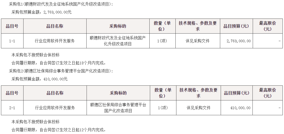 采购包1(顺德财政代发及全征地系统国产化升级改造项目)特定资格要求如下: