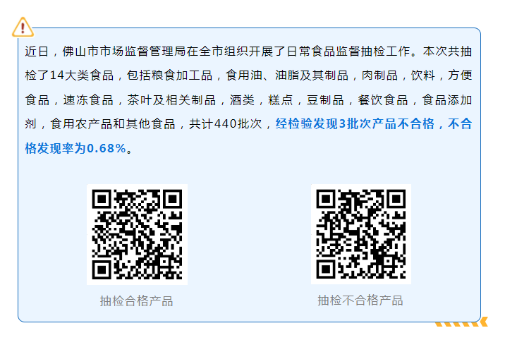 佛山市场监管部门已及时对不合格食品生产及经营者进行调查处理,依法查处违法生产经营行为,督促企业履行法定义务。