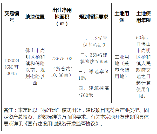 本块地其他规划指标和要求按《高明区土地使用规划条件》(佛规明设函〔2023〕0024号)相关规定执行。