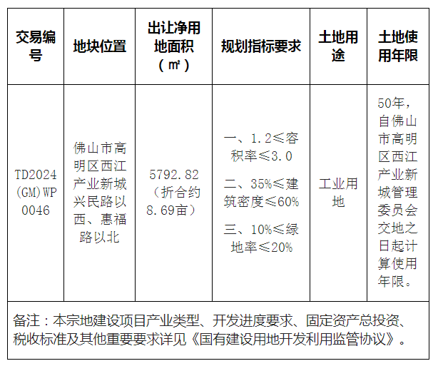 高明区西江产业新城兴民路以西、惠福路以北网上拍卖出让