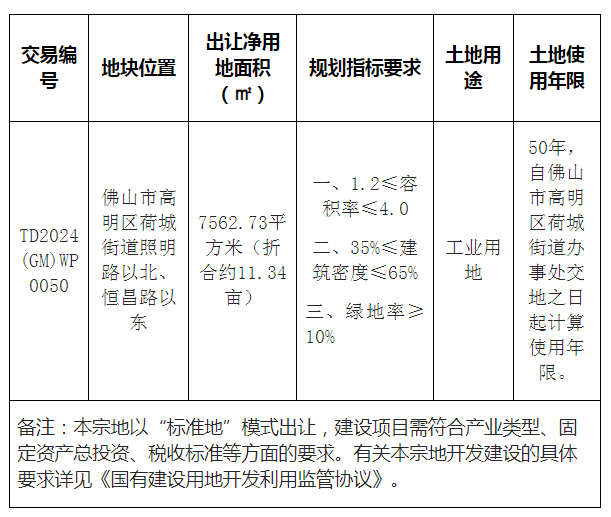 五、有意参与竞买者可于2024年10月11日后登录网上交易系统下载该地块的《佛山市高明区国有建设用地使用权网上拍卖出让文件》。