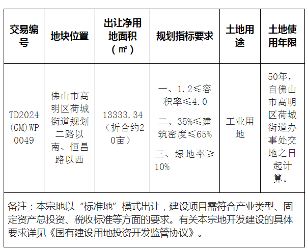 五、有意参与竞买者可于2024年10月11日后登录网上交易系统下载该地块的《佛山市高明区国有建设用地使用权网上拍卖出让文件》。