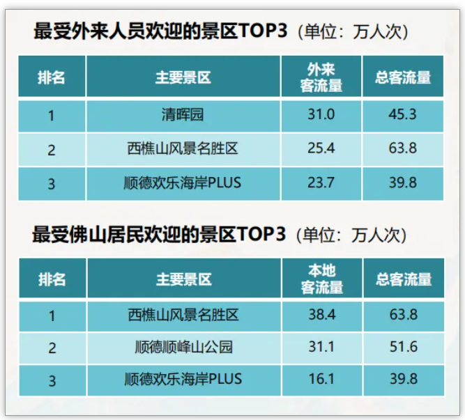 西樵山、顺峰山公园、清晖园、顺德欢乐海岸PLUS、祖庙博物馆成为佛山景区“顶流”。