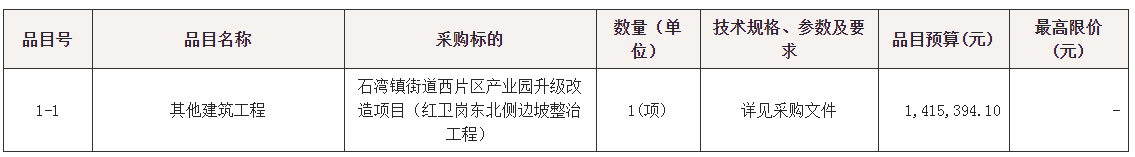 采购包1(石湾镇街道西片区产业园升级改造项目(红卫岗东北侧边坡整治工程)):