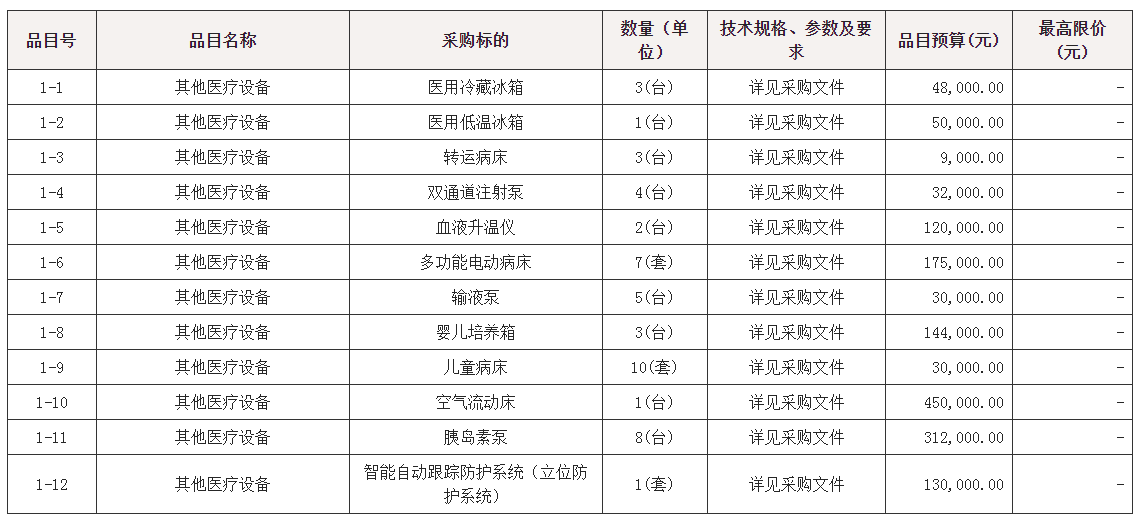 项目名称:医用低温、冷疗设备、病房护理及医院设备、医用射线防护设备项目