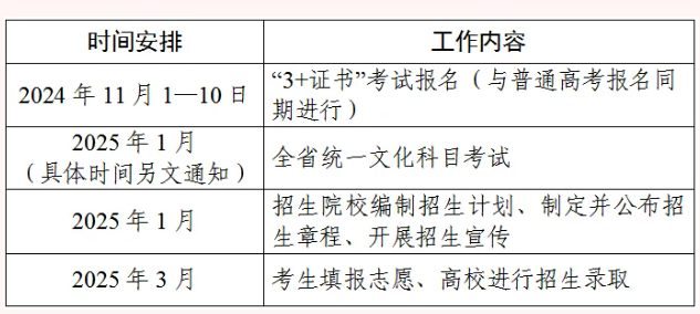 各院校2025年“3+证书”考试招生计划原则上不少于2024年。