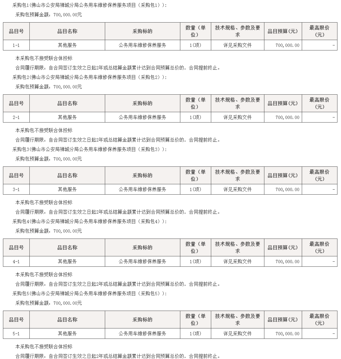 项目名称:佛山市公安局禅城分局公务用车维修保养服务项目