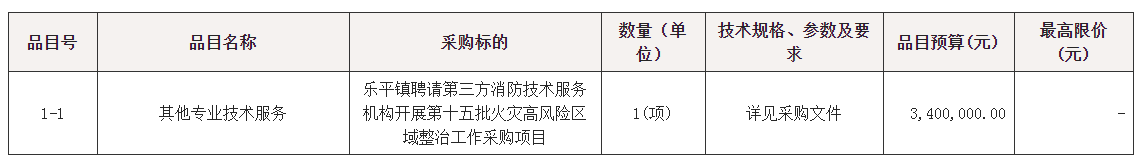 采购包1(乐平镇聘请第三方消防技术服务机构开展第十五批火灾高风险区域整治工作采购项目):
