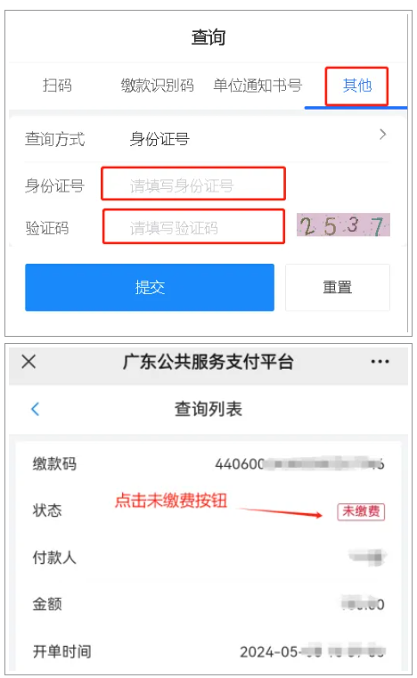 通过扫描二维码或打开网址,进入广东公共服务支付平台缴费页面。