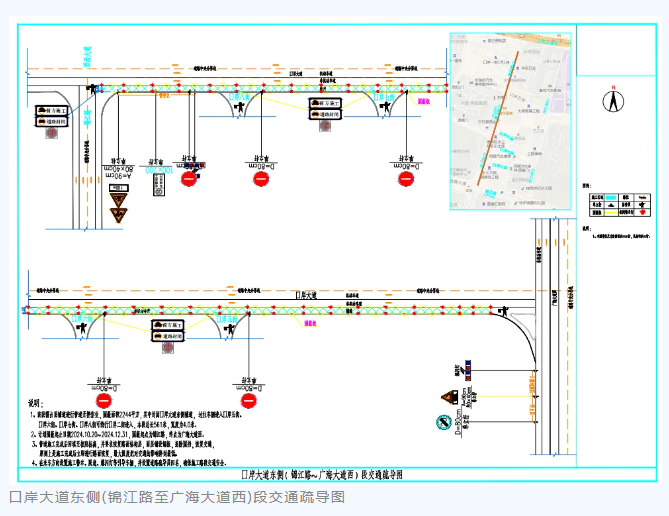二、管制路段:口岸大道双向辅道(锦江路口至广海大道西段)封蔽施工,机动车辆请走主车道,施工范围内公交站暂停使用,界时视工程进度情况分段封蔽分段解封。