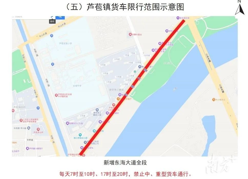 芦苞镇的货车限行范围为新增东海大道全段,每天7时至10时、17时至20时,禁止中、重型货车通行。