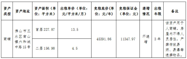 > 佛山市三水区南山镇公有资产(商铺)竞租公告(第二次)