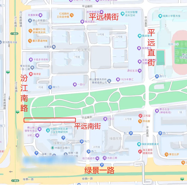 该段现状为单向车行道,围蔽后引导车辆路线:平远直街——绿景一路——汾江南路。