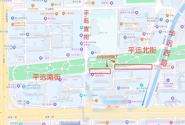 (三)第3段(约15天):占用平远南街(平远直街-华远西路),该段分段封闭施工。