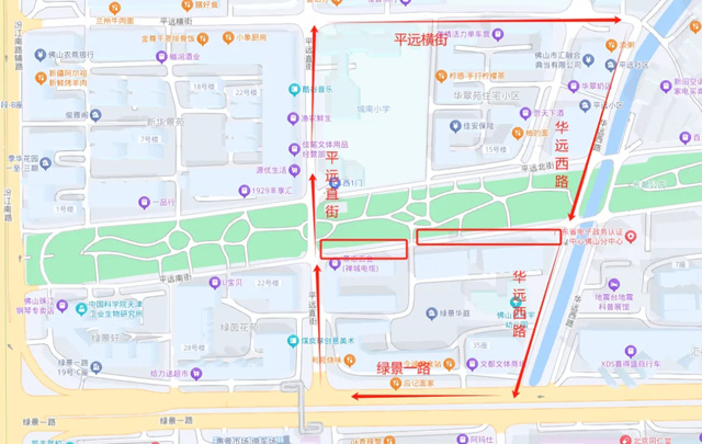 施工期间,引导车辆路线:平远直街——平远横街——华远西路。