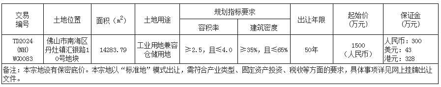 八、自本次公告起至网上挂牌截止期间,如有关于本宗地竞买文件的修改、澄清、说明等将通过网上交易系统以及佛山市南海区人民政府网发布,请有意参与竞买者密切留意。其它未尽事宜,详见本宗地的网上挂牌出让文件。