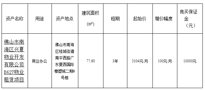 1.招/出租人: 佛山市南海区兴夏物业开发有限公司
