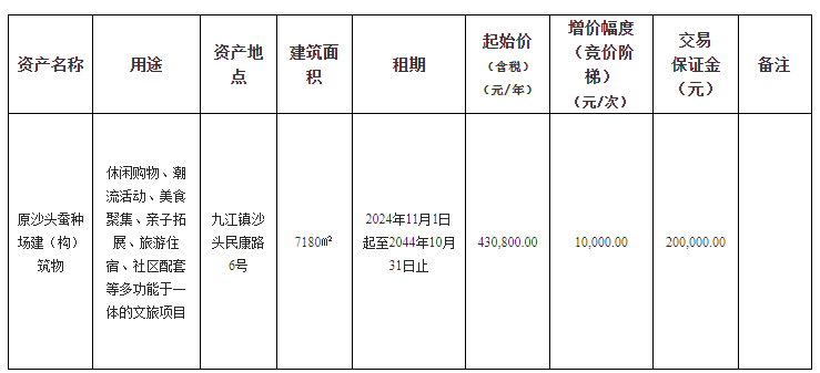 南海九江镇原沙头蚕种场建(构)筑物竞租公告