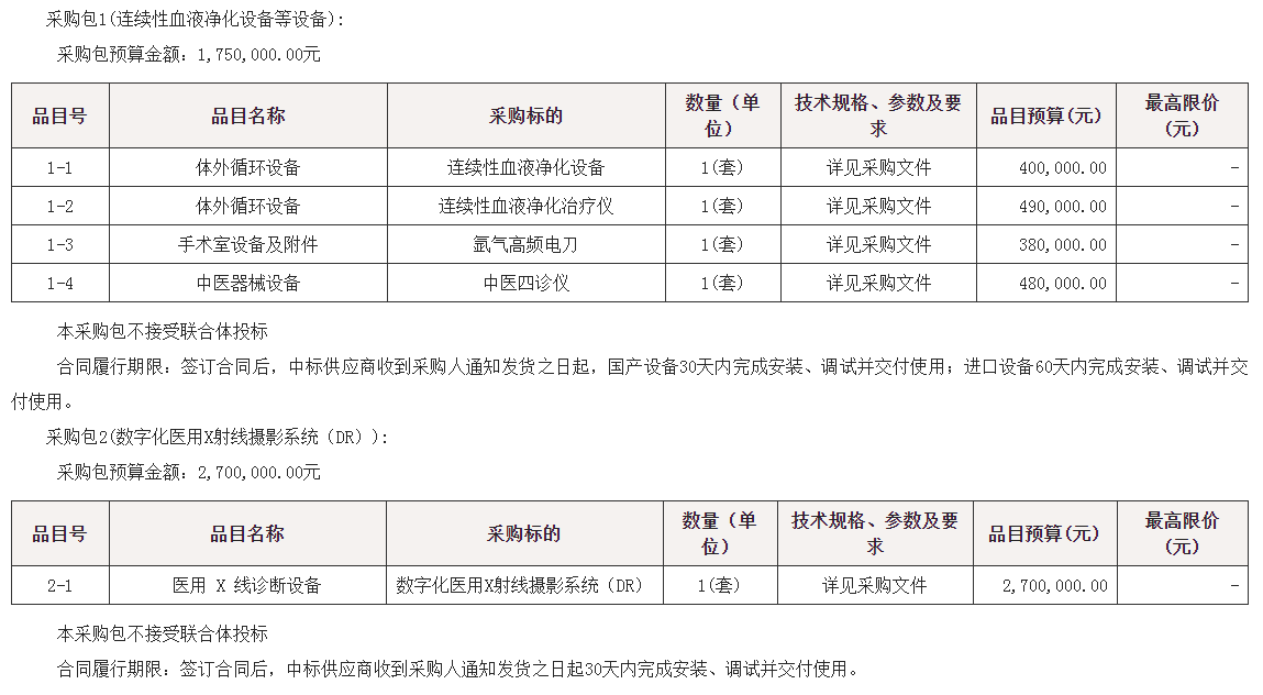 项目名称:广州中医药大学顺德医院采购连续性血液净化设备等设备一批项目