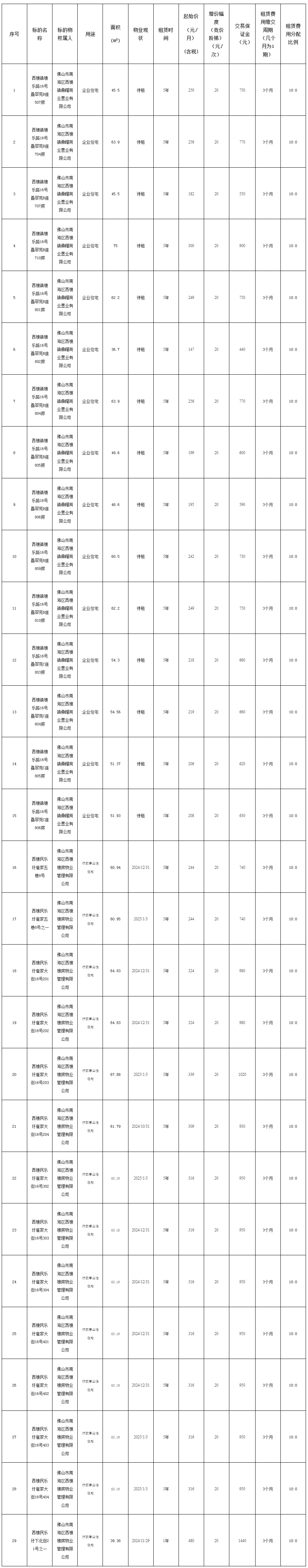 5.上述物业均按现状招租。表内面积数据仅供参考,以实际交付面积为准,不影响租赁费用标准。
