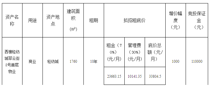 西樵轻纺城翠云街2号(原轻纺城综合市场)首层物业公开招租明细表