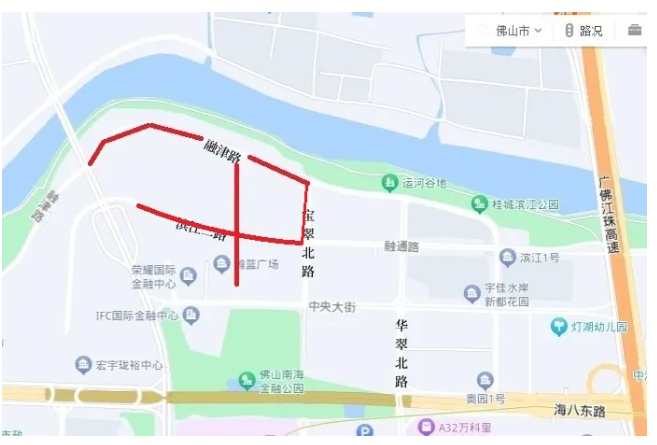 封闭千灯湖音乐秀场周边的融津路(宝翠北路至联河桥)双向车道,滨江二路(华翠北路以西路段)双向车道,宝翠北路(融津路至滨江二路)瀚南广场东侧路段。