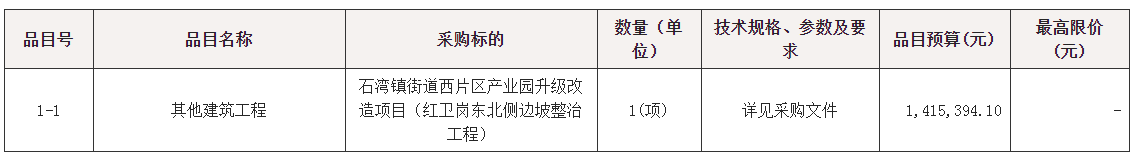 采购包1(石湾镇街道西片区产业园升级改造项目(红卫岗东北侧边坡整治工程)):