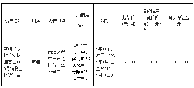 南海桂城街道平洲永安中路3号首层商铺之一物业租赁项目