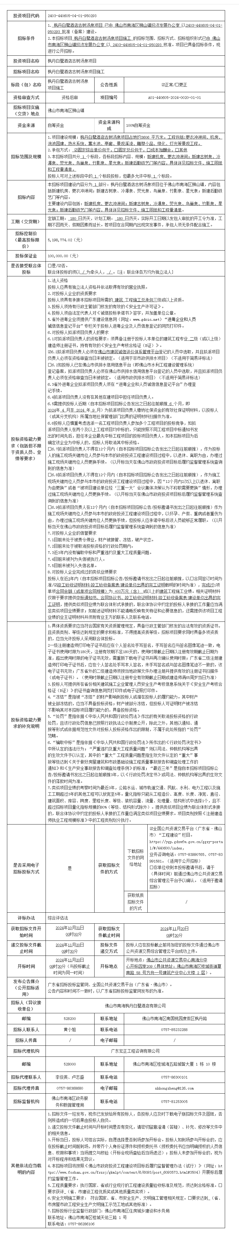 南海区枫丹白鹭酒店古树汤泉项目施工招标公告